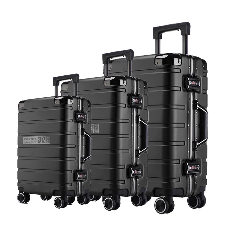 Special Design Customized Mala De Bordo Hard Shell Aluminum Frame Suitcase Luggage Mute Wheels Mala De Viagem ABS PC Suitcase