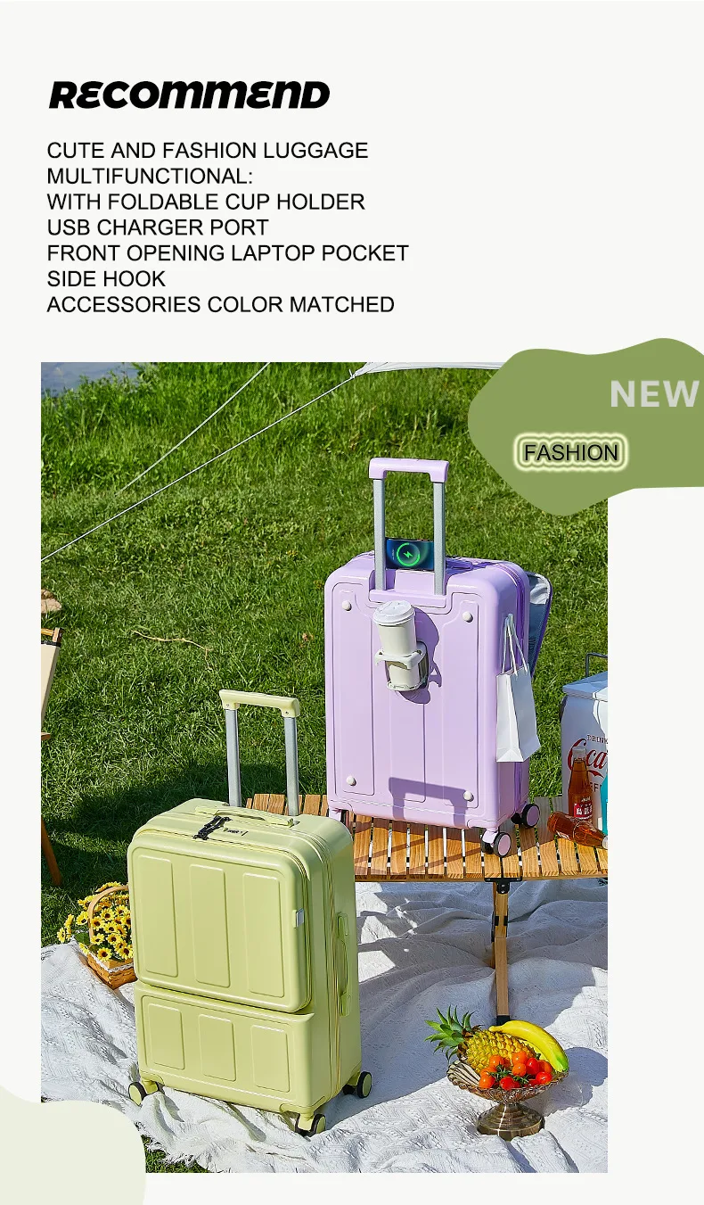 Front Opening Multi-Functional ABS PC Luggage Suitcase Wholesale Travel Trolley Case