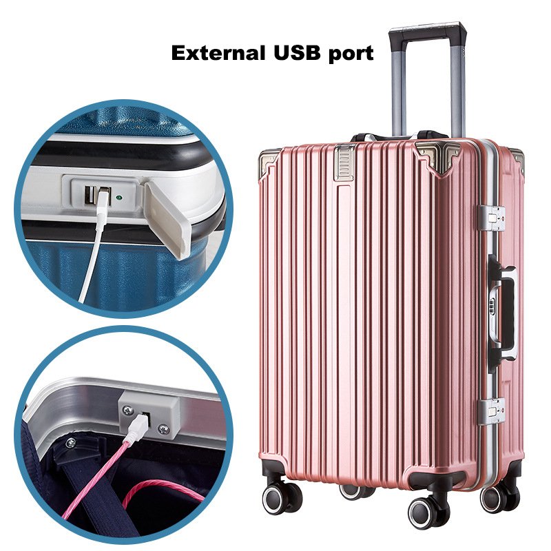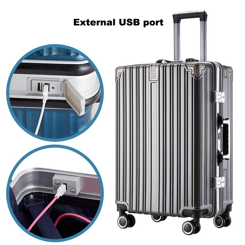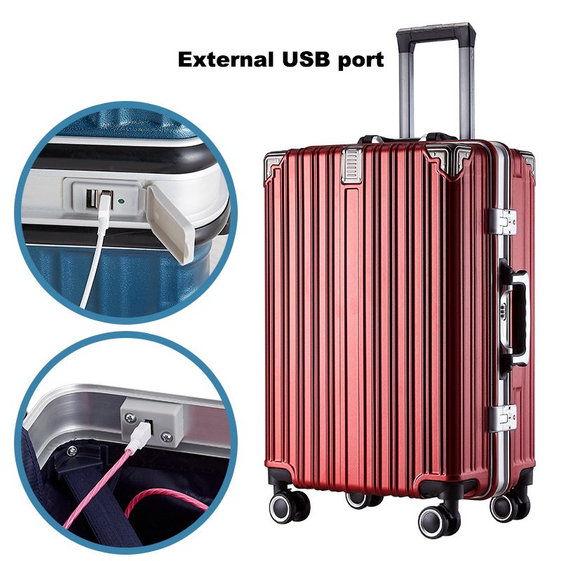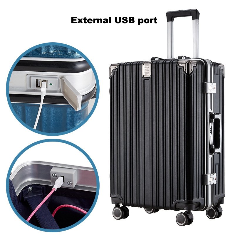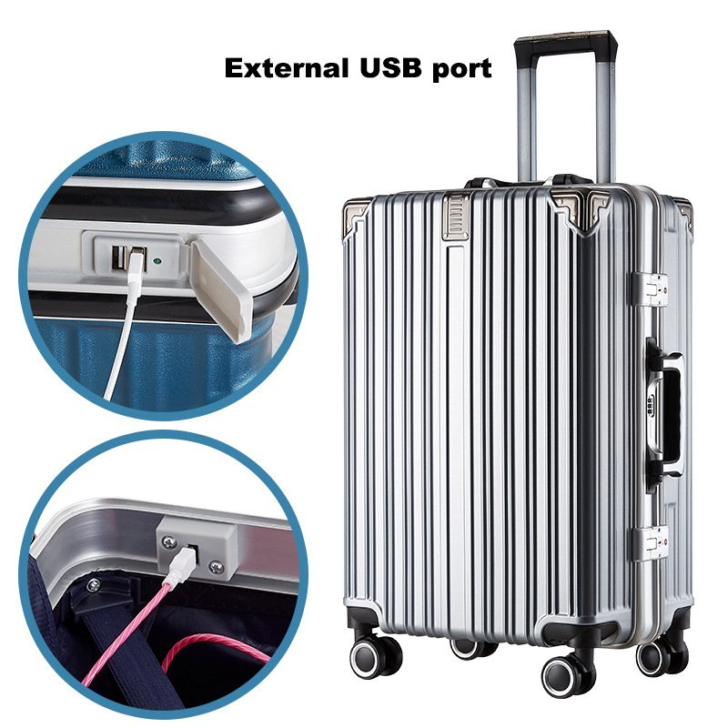 Dual password lock travel aluminum frame suitcase luggage with trolley