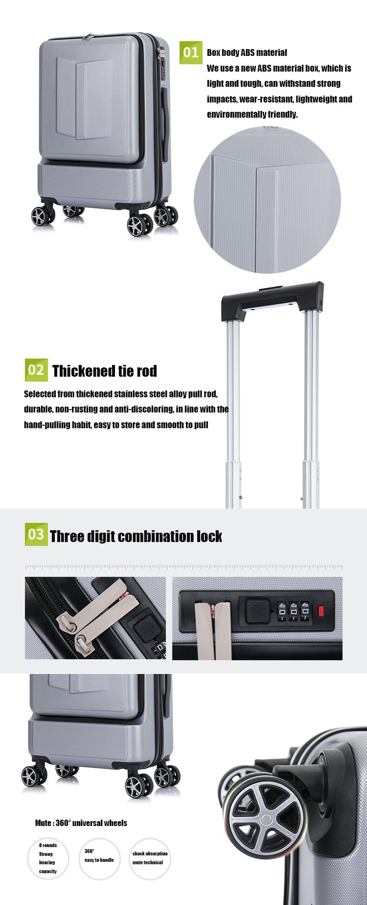 Hard Case ABS Business Luggage Bags With Front Opening