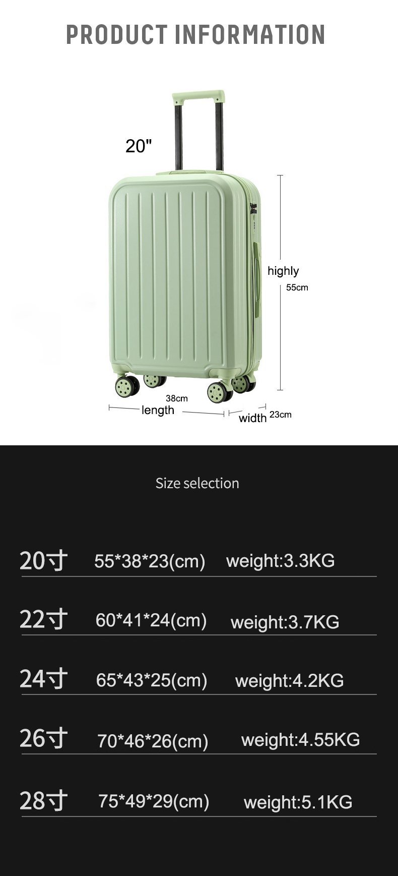 Hard Case ABS Stripe Luggage Cabin Suitcase With OEM Customized