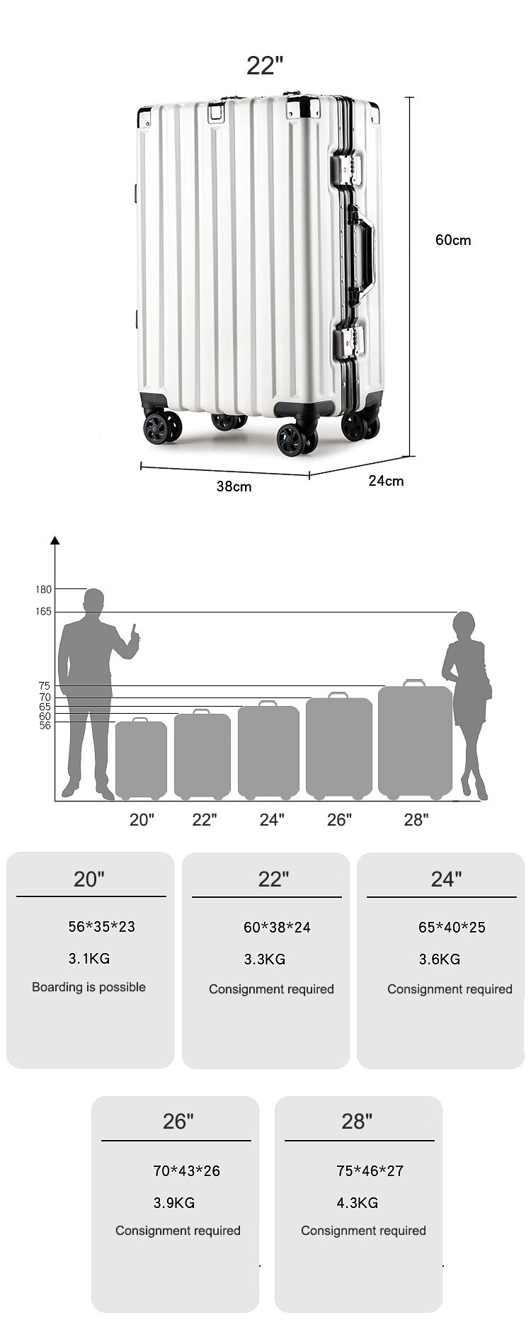 Size: 20″+ 22″+ 24″+ 26″+ 28″