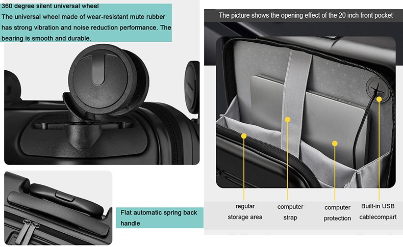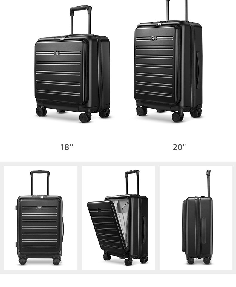 Hard Case Black Business Travel Trunk Cabin Luggage With Laptop Compartment