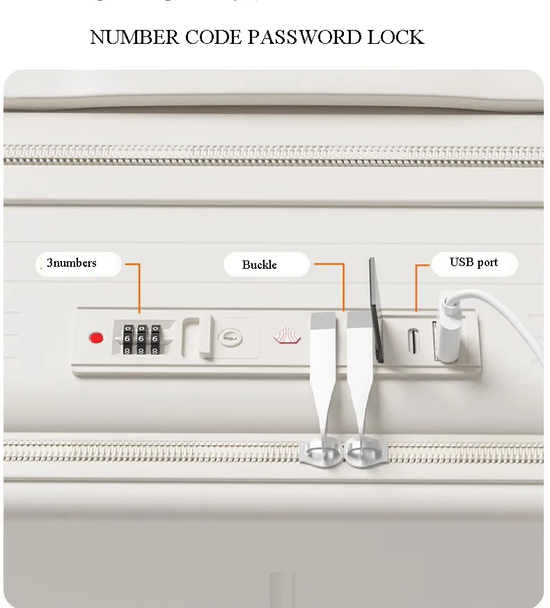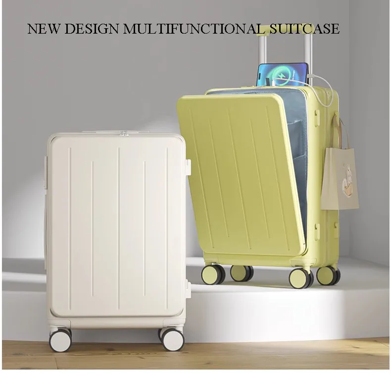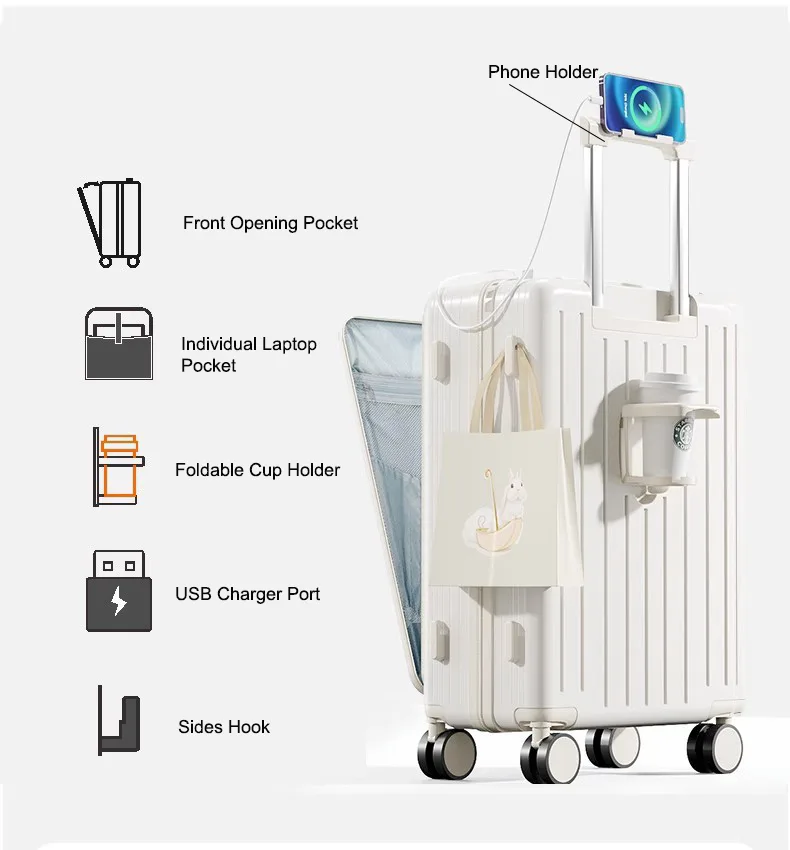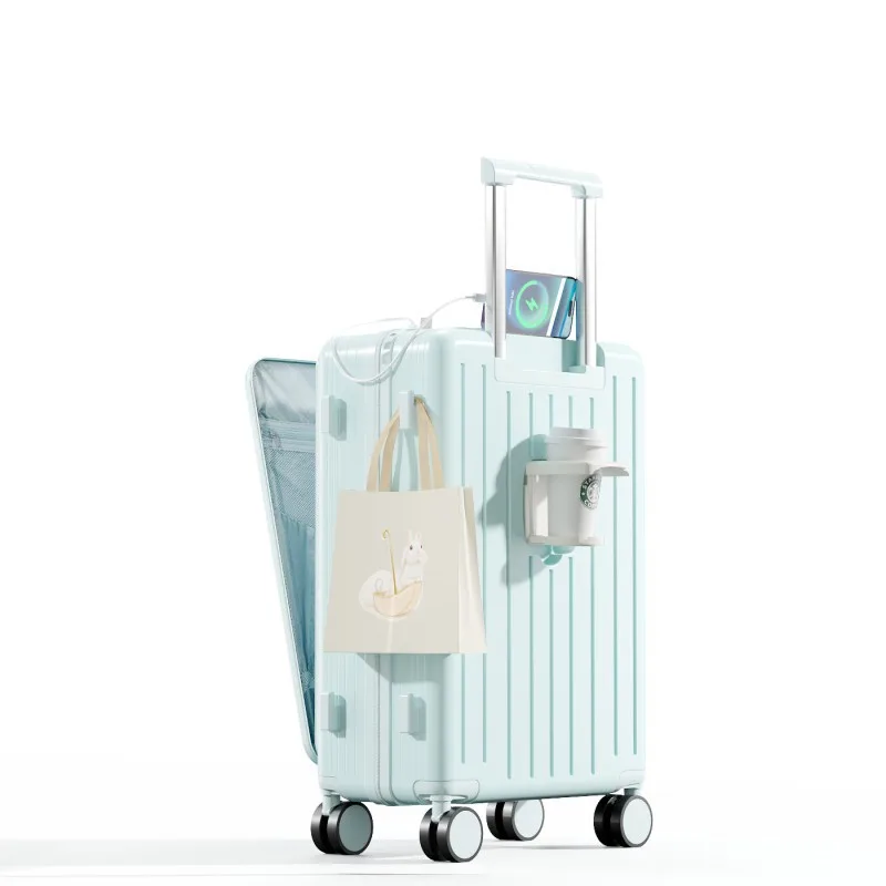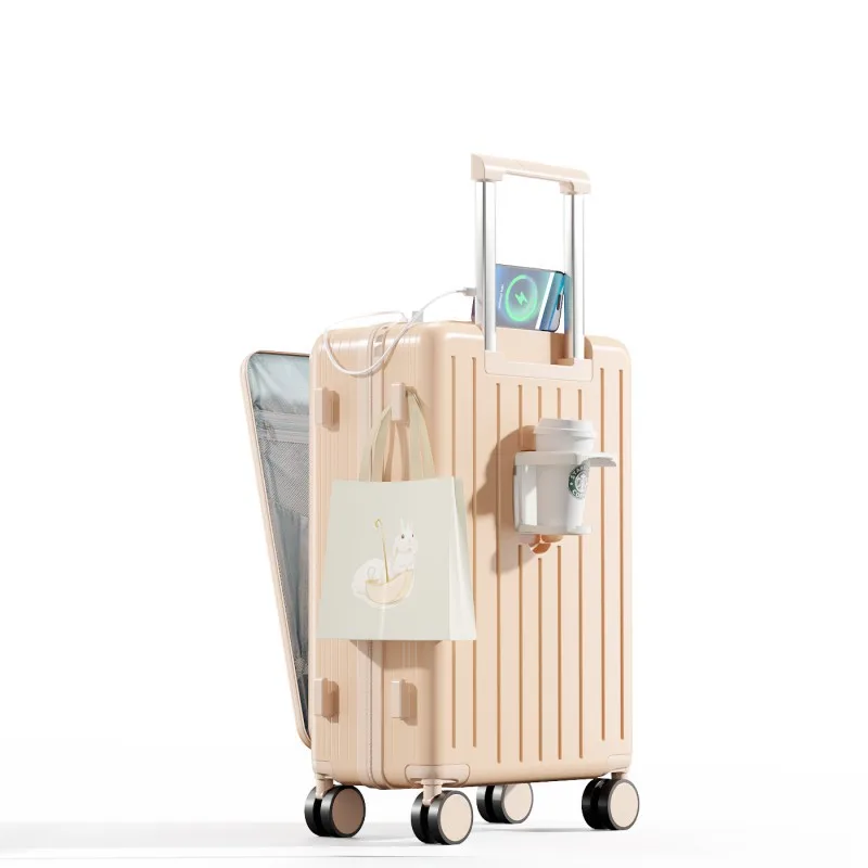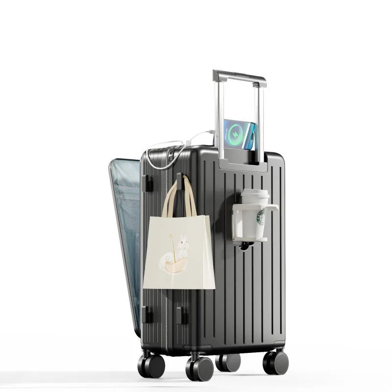 High Quality and Low Price Customization Suitcase with USB Port Cup Holder Universal Spinner Wheels