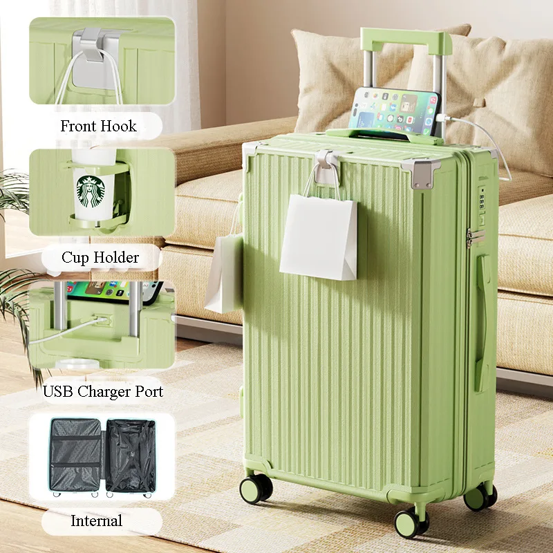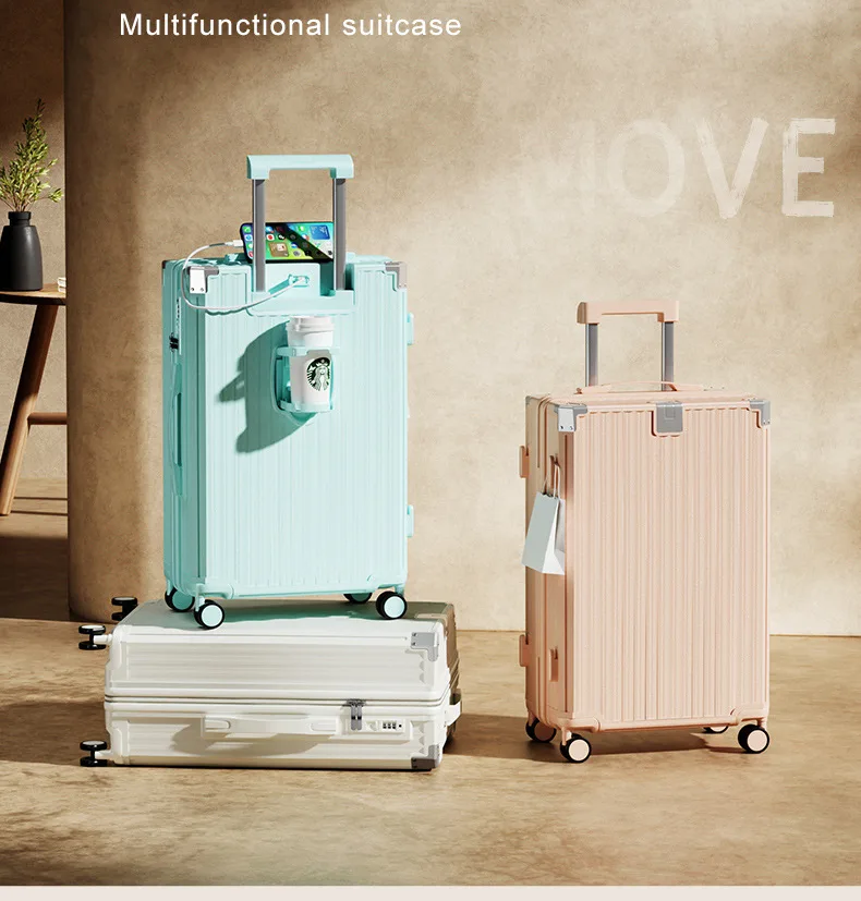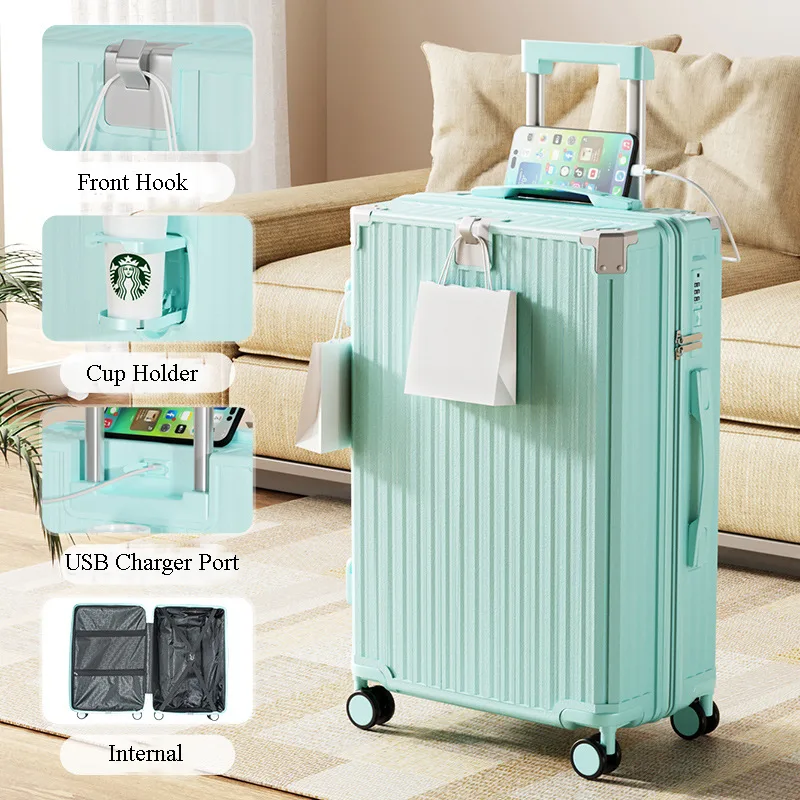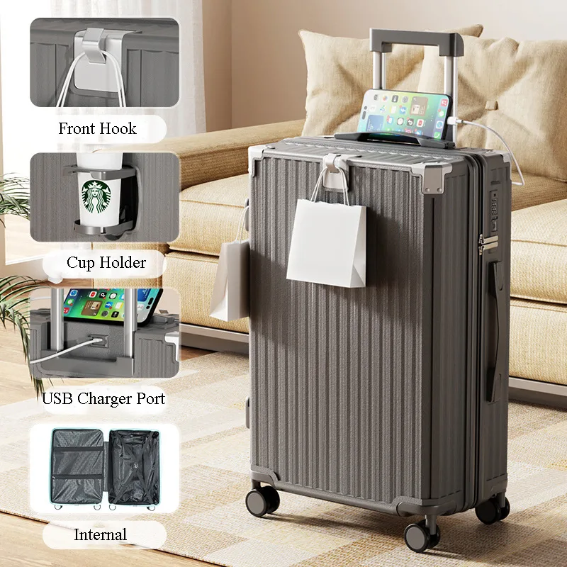 Hot Sale Travel Trolley Luggage Suitcase with Cup Holder Waterproof Hard Shell Travel Suitcase