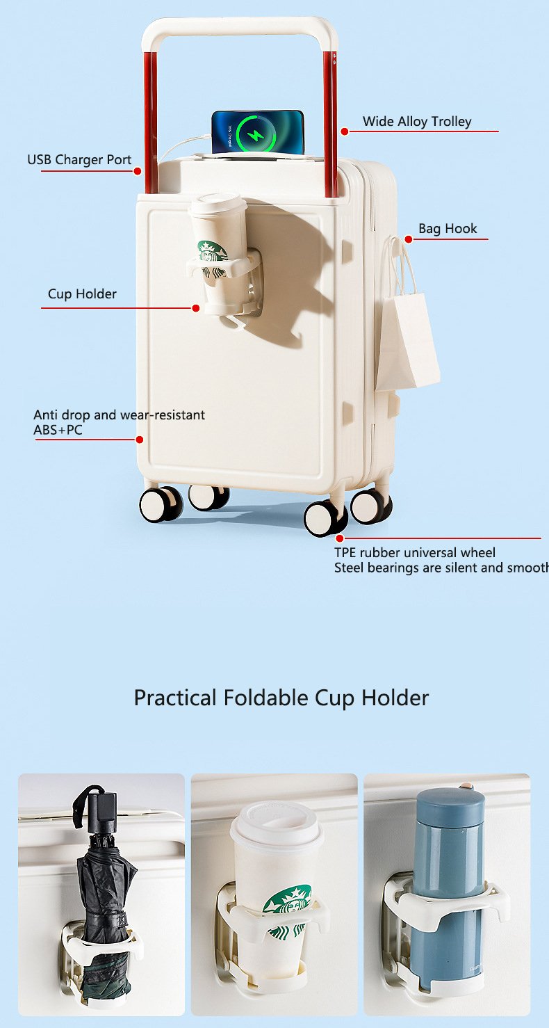 Features: Wide Trolley, usb charger port, cup holder, accessories color matched, sides hook