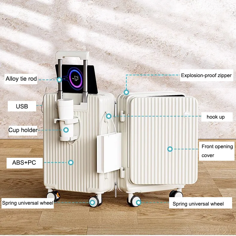 Long Trip Suitcase Set Business Carry On Front Laptop Opening Outdoor Trolley Luggage