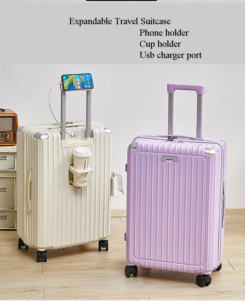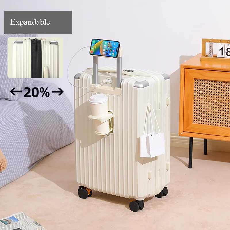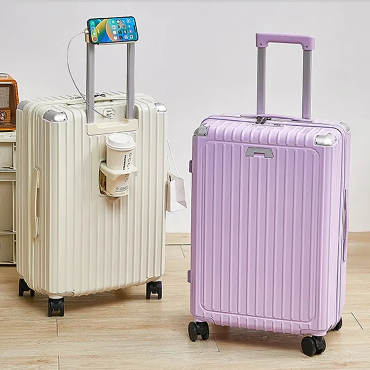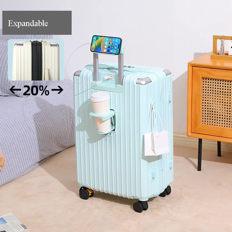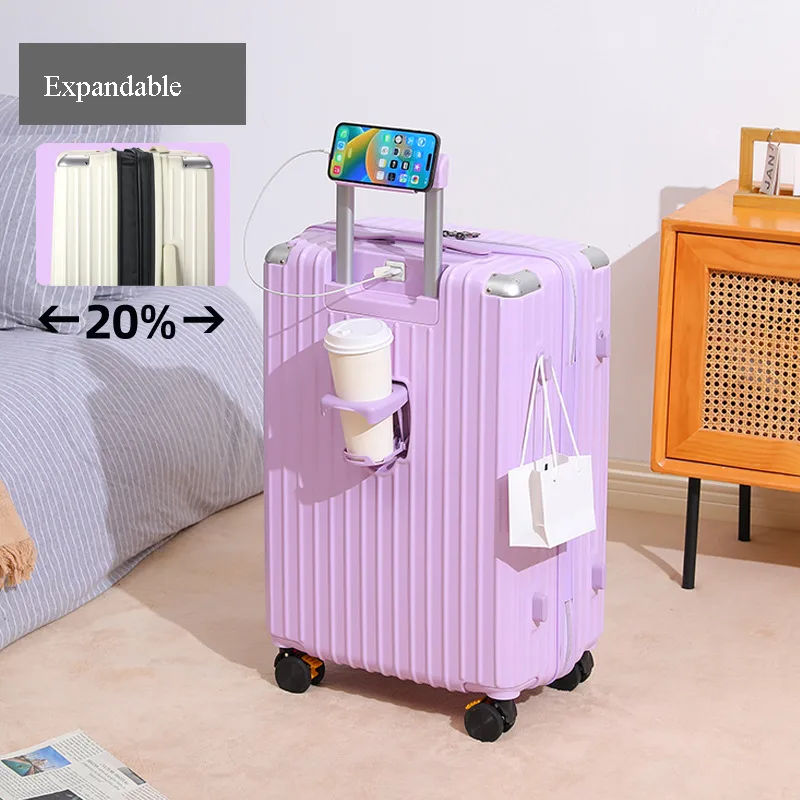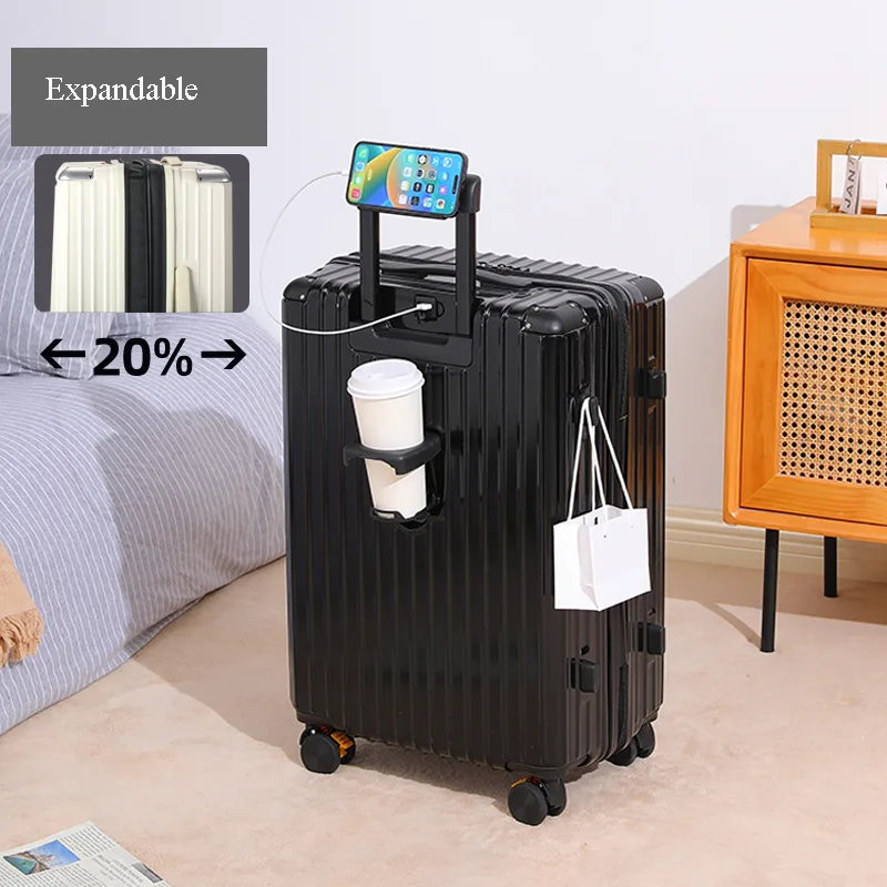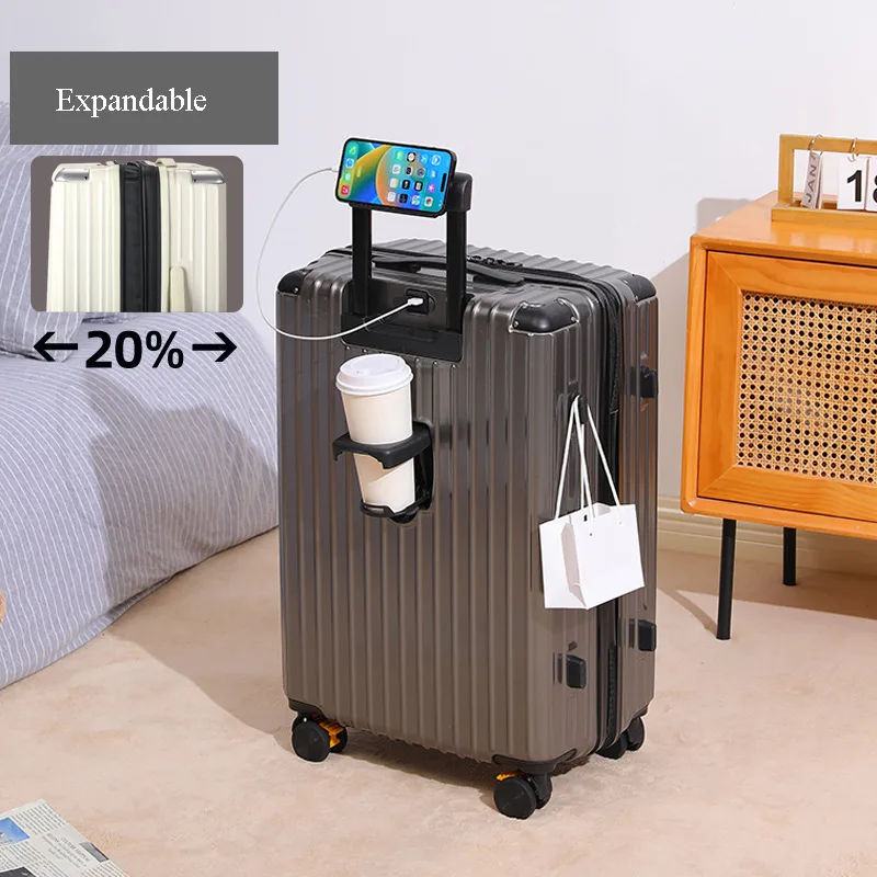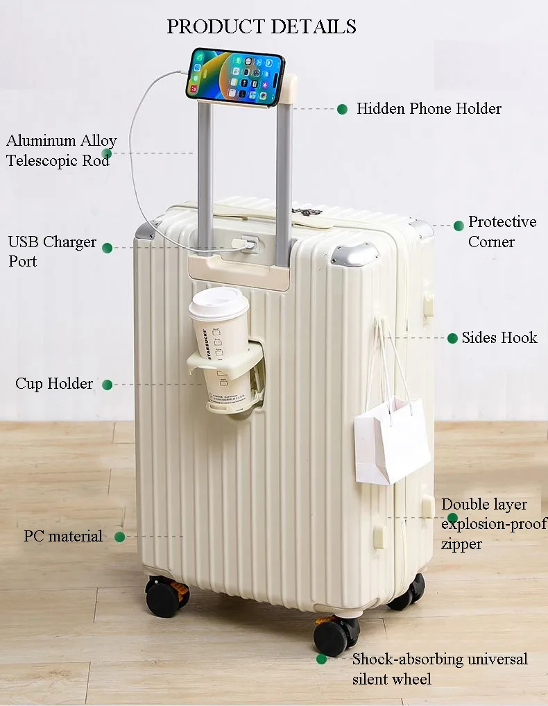 Multi-Functional Hard Shell Travel Trolley-Luggage Suitcase with Cup Holder and USB Port