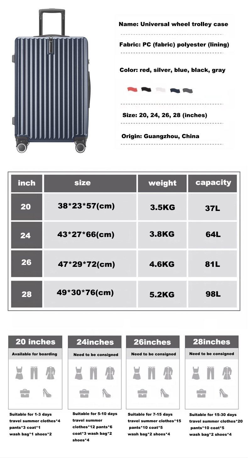Pure PC Zipper Closure Travel Suitcase Luggage Big Size 28″