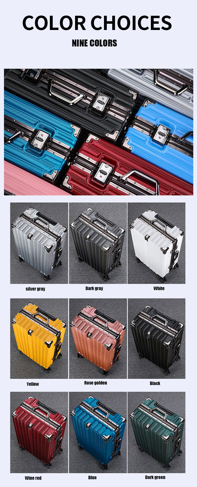 Colors: black, silver gray, dark gray, wine red, green, white, red, rose golden, yellow