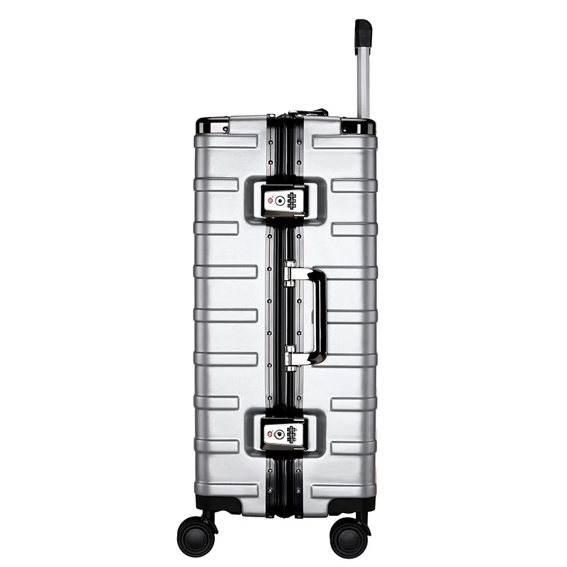 🔹 Simplified Aluminum Frame: The simplified aluminum frame suitcase is known for its minimalist design and straightforward construction. It typically features a single, sturdy aluminum frame that provides robust protection and durability without added bulk. This type is ideal for travelers who value efficiency and a clean, modern look. Its lightweight nature makes it easy to maneuver while still offering excellent security for your belongings.